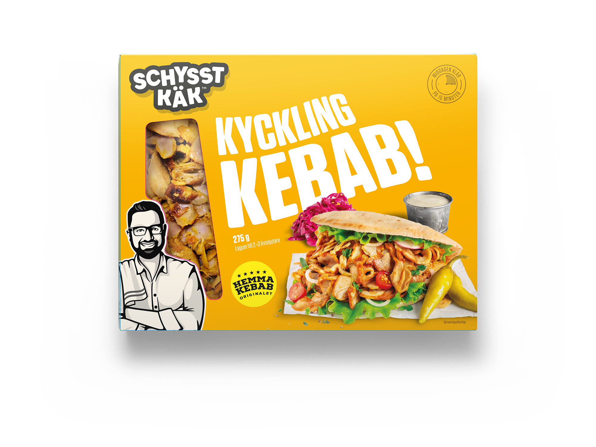 Ugn: Avlägsna plasten och lägg kebaben i en ugnstålig form. Värm på 200 °C i 5-6 minuter.