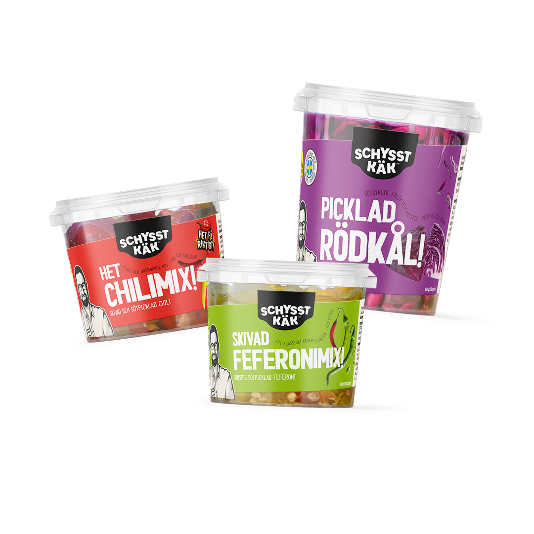 Het chilimix som är het på riktigt, mellan 5.000-100.000 scoville. Krispiga sötpicklade turbogurkor (aka feferoni) som ger hemmakebaben sting. Krispig picklad rödkål som lyfter vilken rätt som helst - med våra nya kebabtillbehör kan du göra din grej!